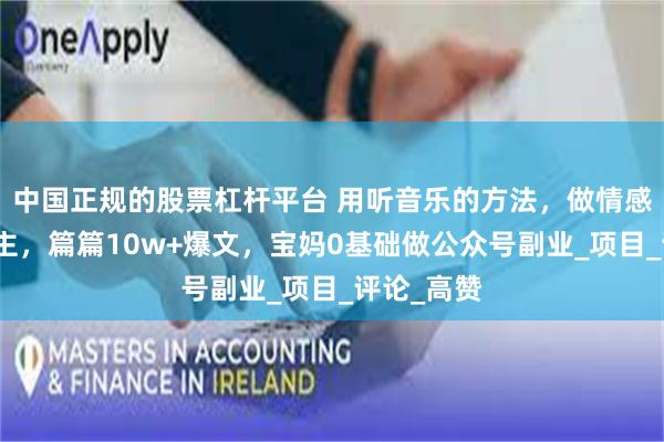 今天给大家分享一个项目:中国正规的股票杠杆平台 利用高赞评论做情感文案类流量主,篇篇10w+爆文,宝妈带娃也能做 之前测...